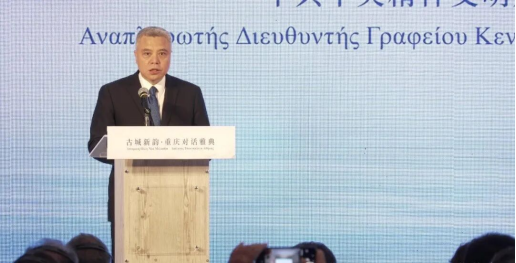 9月25日,“古城新韵·重庆对话雅典”城市文明对话活动在雅典扎皮翁宫成功举办。